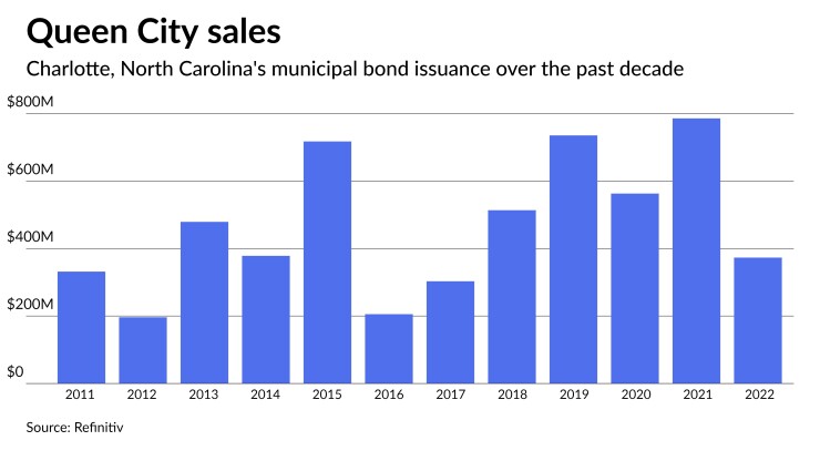 In October, when Charlotte was selling $128 million of GOs, Moody's said its Aaa rating reflected "the city's position as a regional economic center, with a robust tax base and healthy population growth, average income levels and a sound financial position, supported by high reserve and liquidity levels. The rating also incorporates the city's elevated fixed costs, including debt and pension expenditures."