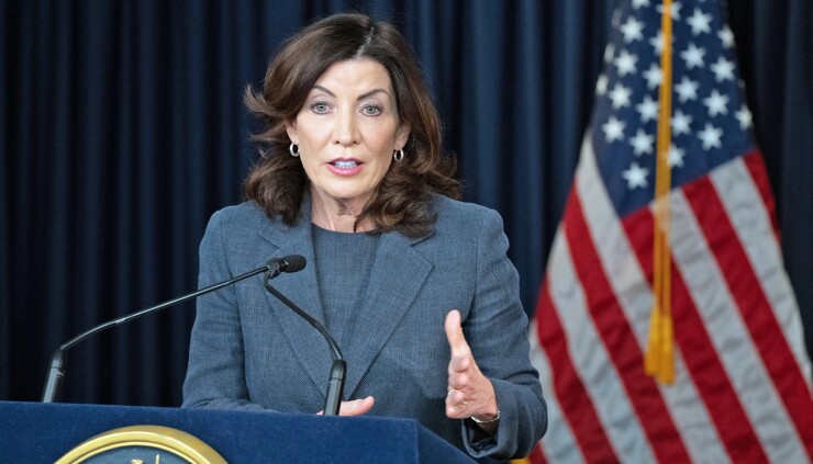 New York Gov. Kathy Hochul, in a press conference Monday, said she wanted to "project calm" amid volatility and "make sure that the entire banking community here in New York was stable."