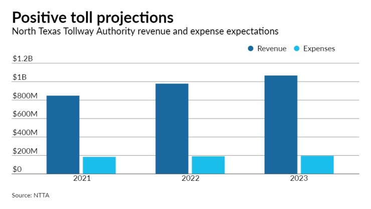 Even after a 25% drop in revenues during the COVID-19 pandemic last year, NTTA maintained debt-service coverage ratios above the levels required by bond covenants. The authority reduced spending and delayed some projects.