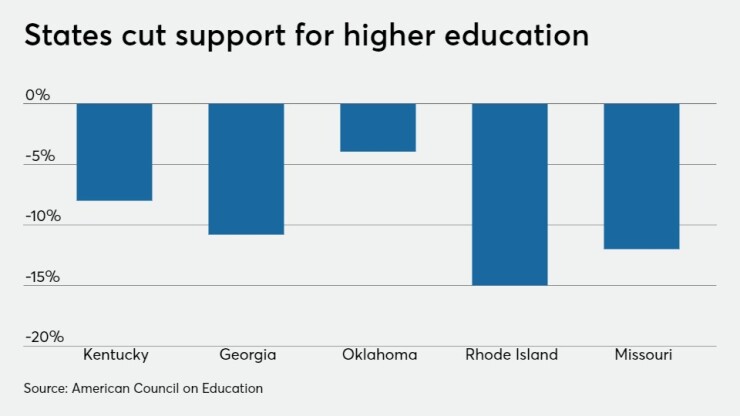 “These cuts, while not universal, are the norm among institutions we’ve heard from,” the letter said. “At the 44 public institutions who provided detailed information to us, 32 reported that their state has implemented budget cuts ranging from 5% to 58% of overall support, with the average cut being 11.3%.”