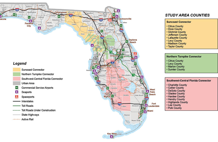 The longest toll road being proposed is the Southwest-Central Florida Connector that could slice through the rural heartland of the state about 150 miles from Lakeland to Naples.
