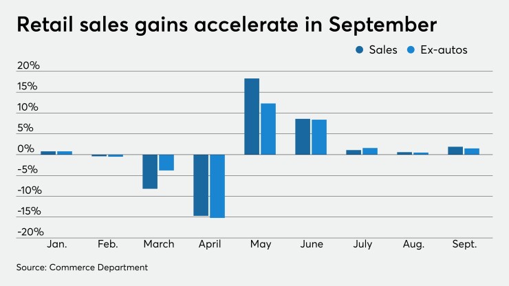 “Retail sales have exceeded pre-pandemic level since June, so the acceleration in its growth in September, which placed it 4.2% above February’s level, is remarkable,” said Roiana Reid, U.S. economist at Berenberg Capital Markets.