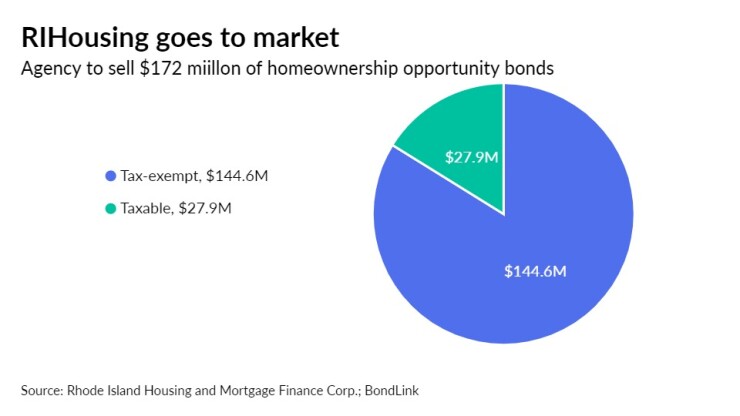 RIHousing intends to sell $145 million of Series 75-A tax-exempt bonds and $28 million of taxable Series 75-T bonds. Officials expect proceeds to purchase $141 million of additional mortgage-backed securities.