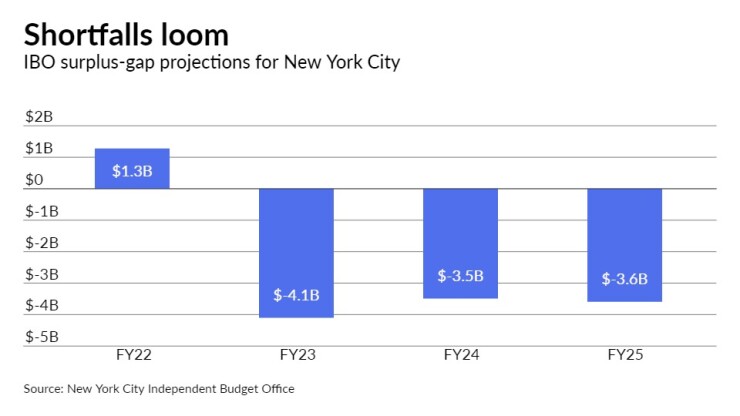 IBO projects a $4.1 billion shortfall for fiscal 2023. By law, the city must pass a balanced budget.