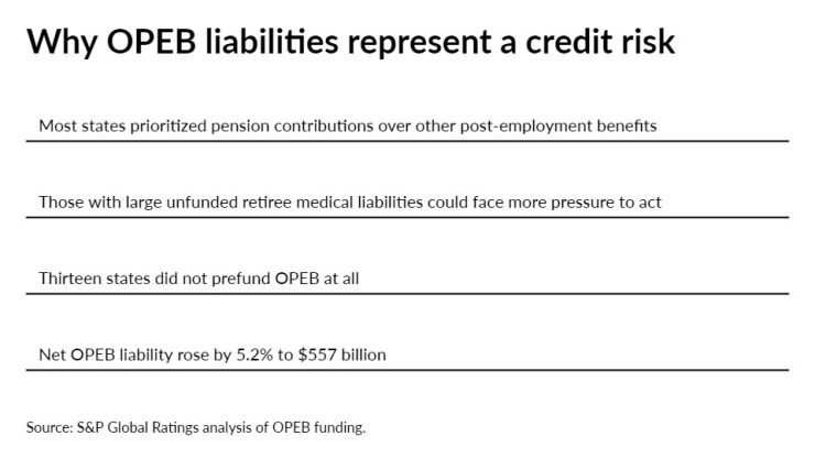 S&P Global Ratings has singled out states’ underfunding of retiree medical benefits as a key credit risk for states.