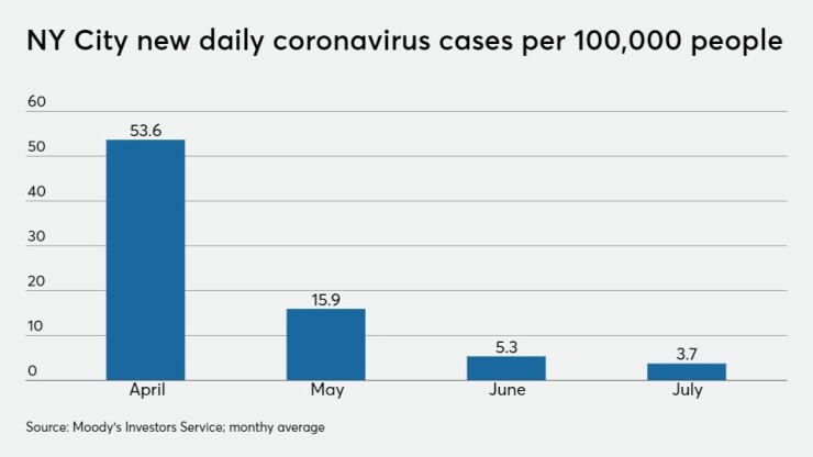 “The announcement, coupled with the state's low overall 1% infection rate, is credit positive for New York City and the state because it would allow more parents to return to work rather than stay at home to care for children, helping tax revenue recover,” Moody’s said in a statement Wednesday.