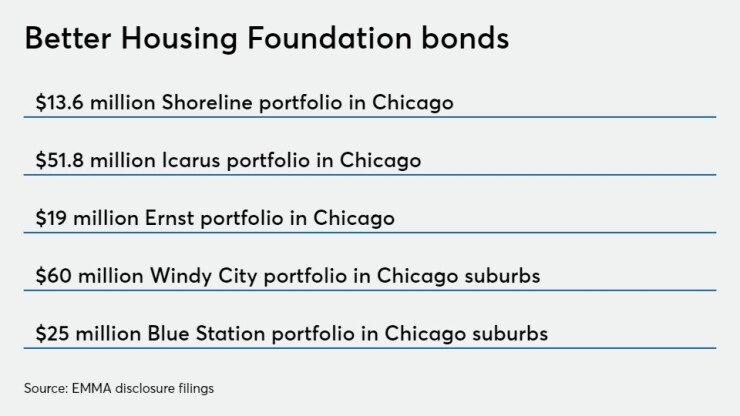 The bonds were sold between 2016 and 2018 through the Illinois Finance Authority. Defaults occurred in June on the three Chicago portfolios — Shoreline, Icarus, and Ernst — and in December on the suburban Blue Station and Windy City portfolios. Blue Station was recently put on the selling block. The suburban portfolios are in better shape and have higher occupancy rates than the nearly empty city portfolios
