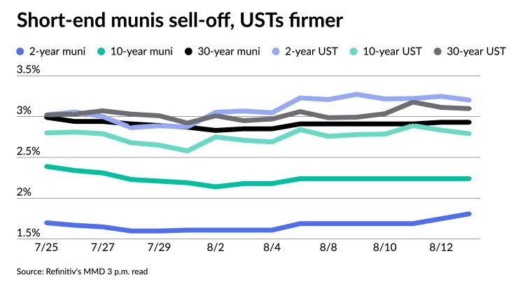 But outside of the one- and two-year triple-A benchmarks, the second week of August saw yields remain unchanged with yields on 10-year notes remaining at 2.26%, as of Friday, said Jason Wong, vice president of municipals at AmeriVet Securities.