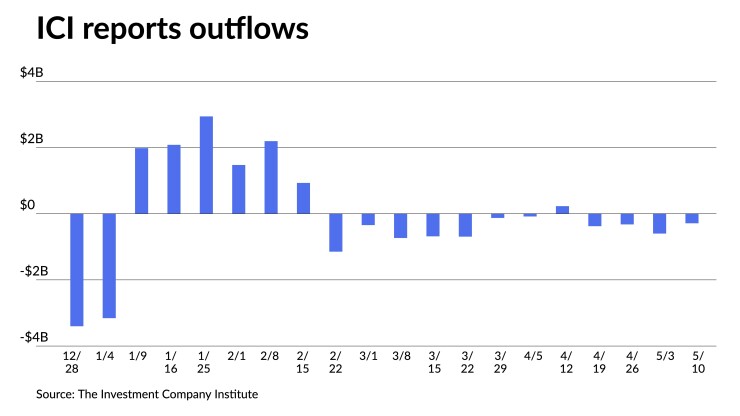 The Investment Company Institute reported investors pulled another $290 million out of municipal bond mutual funds in the week ending May 10, after $600 million of outflows the previous week. Exchange-traded funds saw more inflows to the tune of $258 million after $202 million of inflows the week prior.