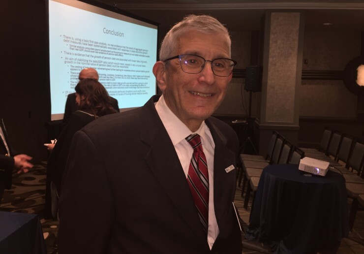His presentation included many references to a study last year, "The Sustainability of State and Local Pensions: A Public Finance Approach," by Louise Sheiner of the Brookings Institution, Byron Lutz of the Federal Reserve and Jamie Lenney of the Bank of England.