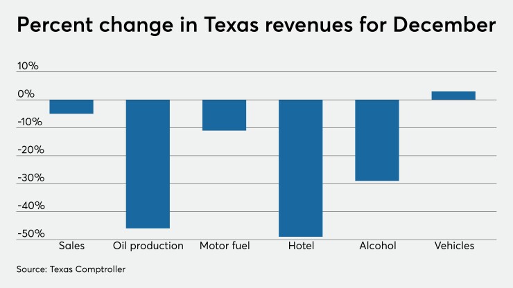 The pandemic and weakened oil prices continued to take an economic toll on Texas in December, according to data from Texas Comptroller Glenn Hegar.