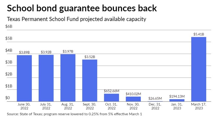 Some capacity was restored to a nearly depleted Texas school bond guarantee program last month after state officials took action, but even more demand for the cost-saving enhancement is expected in the wake of upcoming bond elections.