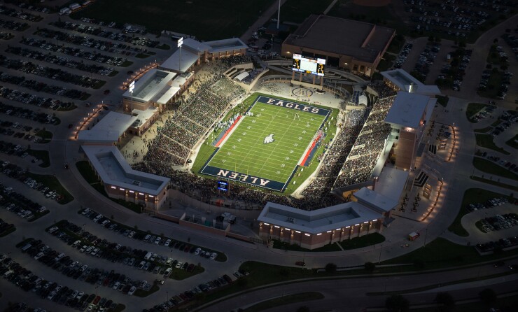 In the affluent Allen ISD north of Dallas, voters rejected $24 million for stadiums and athletic facilities. Allen ISD gained national attention in 2012 with a $60 million stadium and an association with the Dallas Cowboys. The stadium later had to be shut down for repairs after cracks were discovered in the concrete.