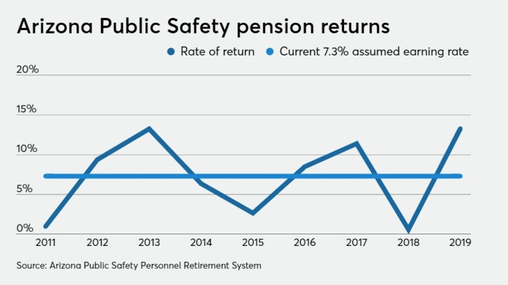 The 2020 fiscal year returns and returns over longer time frames fell below the 7.3% long-term assumed earnings rate set by the PSPRS Board of Trustees.