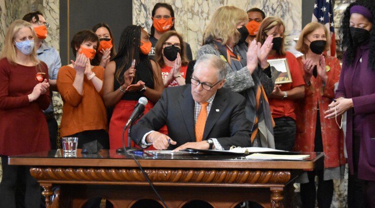 Inslee, a Democrat, also signed a $1.5 billion state construction budget that will pay for housing, homelessness relief, behavioral health facilities, and seismic upgrades at public schools.