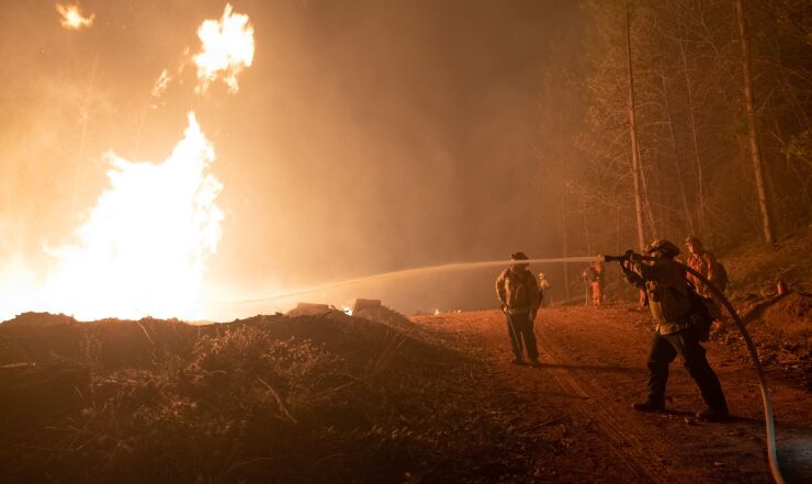 Both Oregon and California are still waging battle against the fires, so it's too early to tell which cities and school districts might face the level of devastation that aid from the Federal Emergency Management Agency and states won't be enough to protect bondholders.