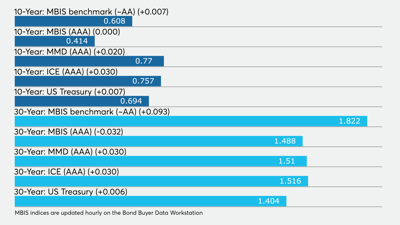Munis continued to weaken with yields on the AAA scales rising by as much as three basis points.