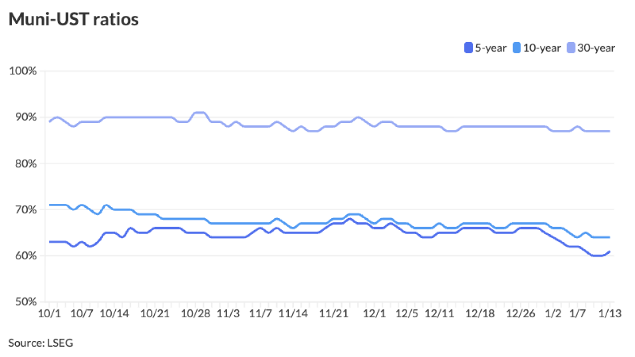 Muni yields were bumped a basis point, while UST yields fell two to four basis points.