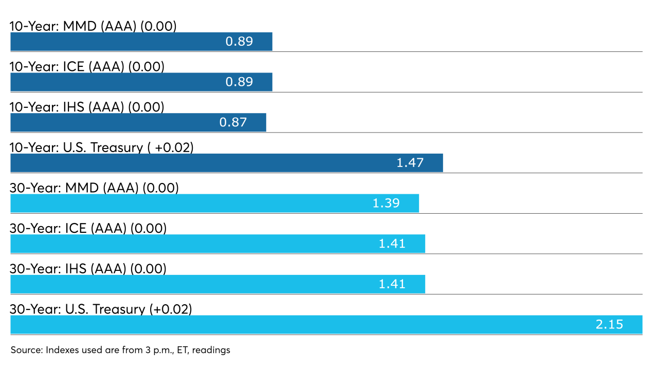 Municipal yield curves were little changed for the seventh straight session while Refinitiv Lipper reported the 40th week of inflows into municipal bond mutual funds, with high-yield seeing a large increase week over week.