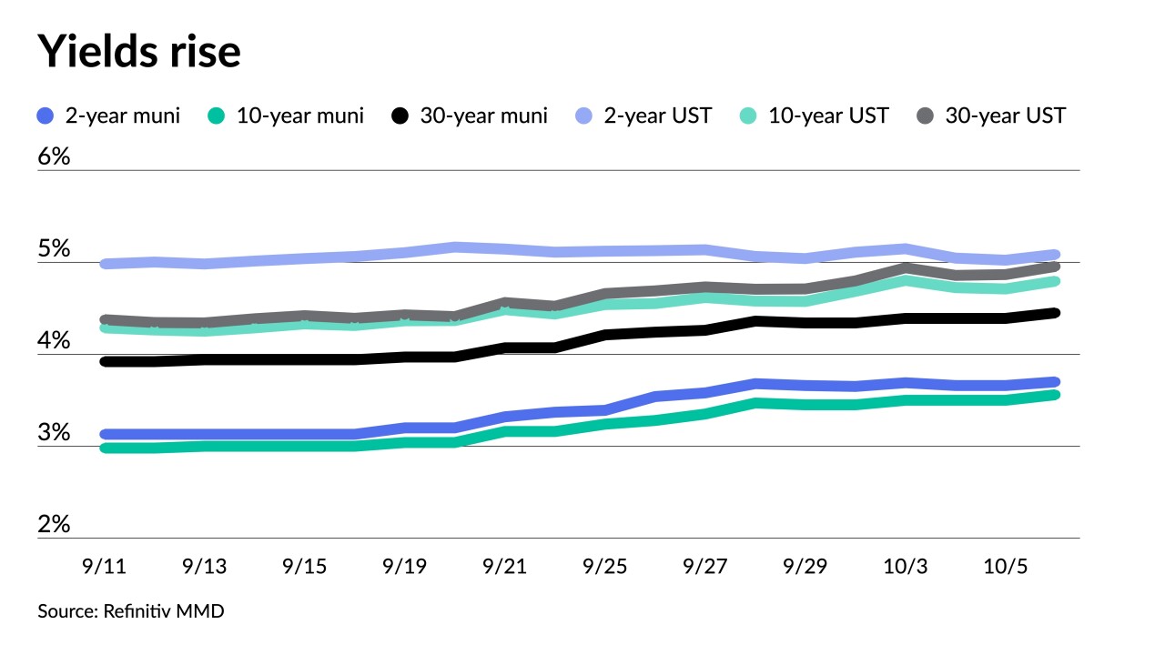 Municipals largely stayed in their own lane Wednesday, digesting the large slate of new issues as supply dwindles heading into election week, with Bond Buyer 30-day visible supply falling to $5.56 billion.