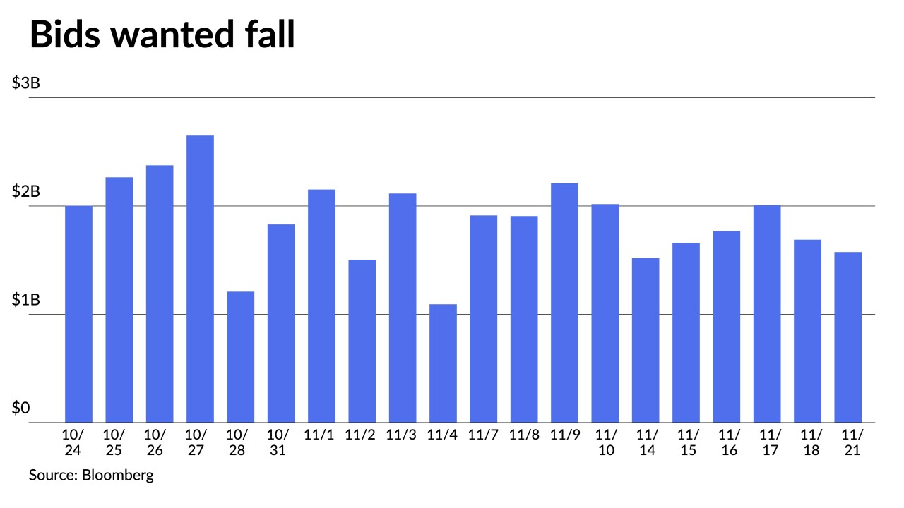 Total November volume stood at $19.712 billion, the lightest of any month year-to-date, in 527 versus $37.073 billion in 1,055 issues a year earlier, according to Refinitiv data.