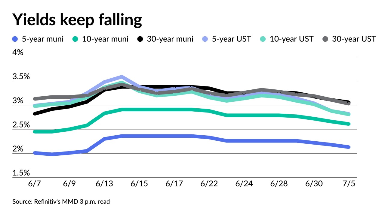 Despite rising U.S. Treasuries, municipals are making gains and are in the black to start July.