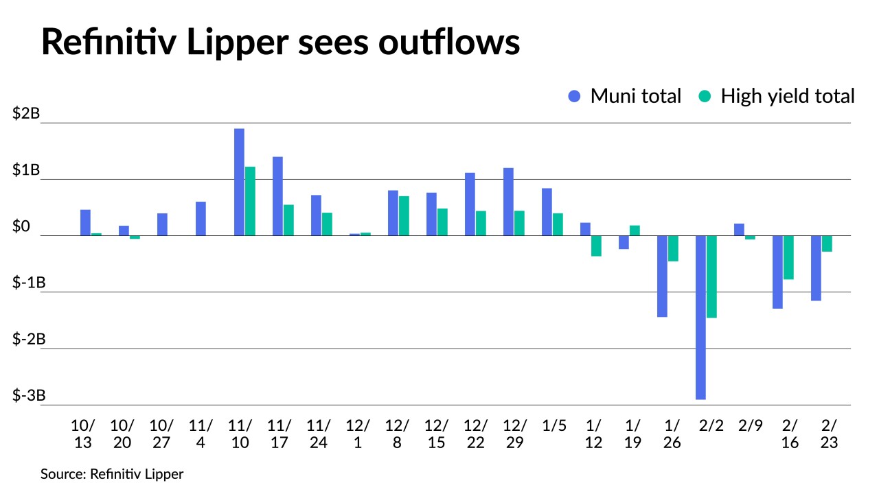ETFs pulled in just more than $2 billion in February while muni mutual funds saw $8.5 billion of outflows.