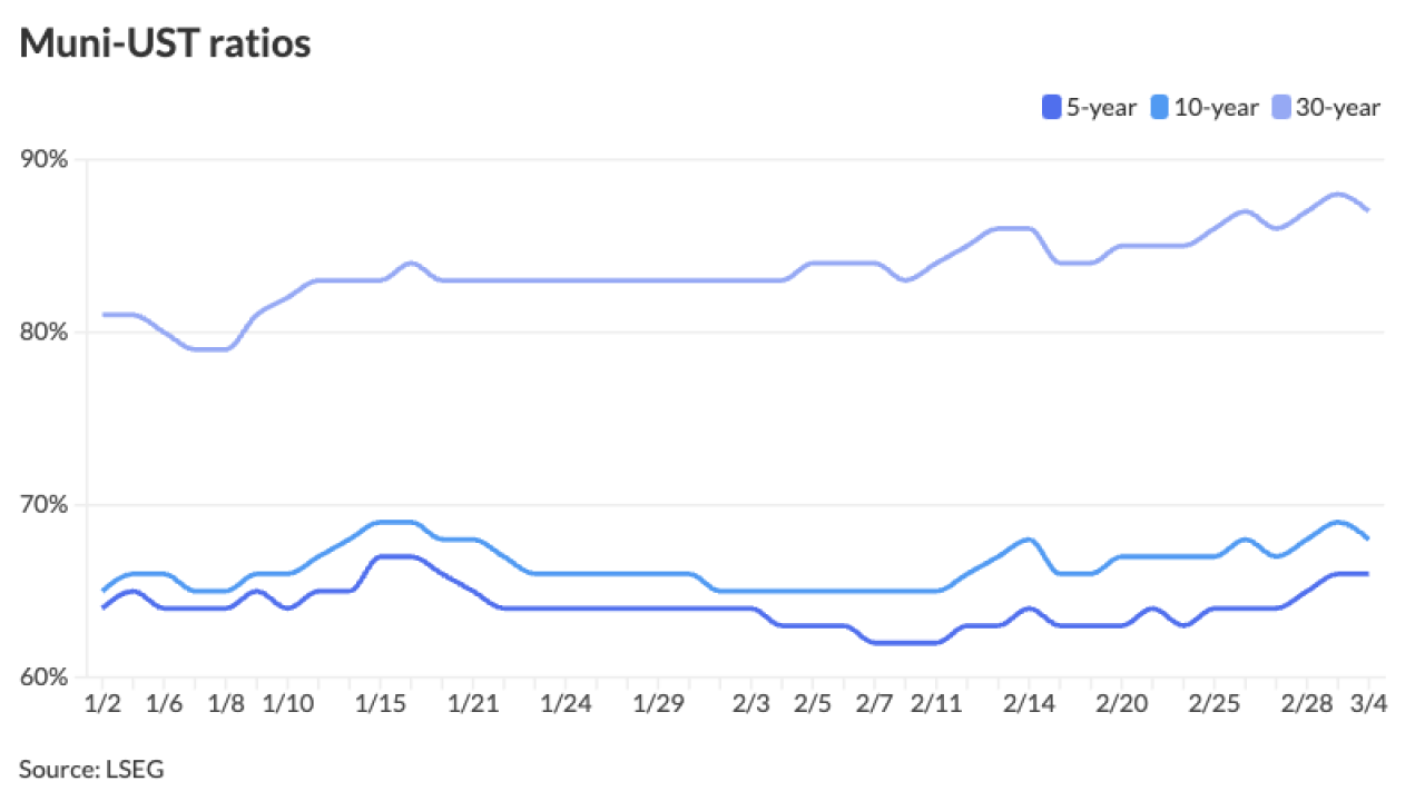 Issuance remains heavy this week, but while it's elevated, the muni market is "structurally undersupplied," meaning if 2024's record level of $500 billion-plus of issuance was doubled, the market could still digest it quite well, said Wesly Pate, a senior portfolio manager at Income Research + Management.