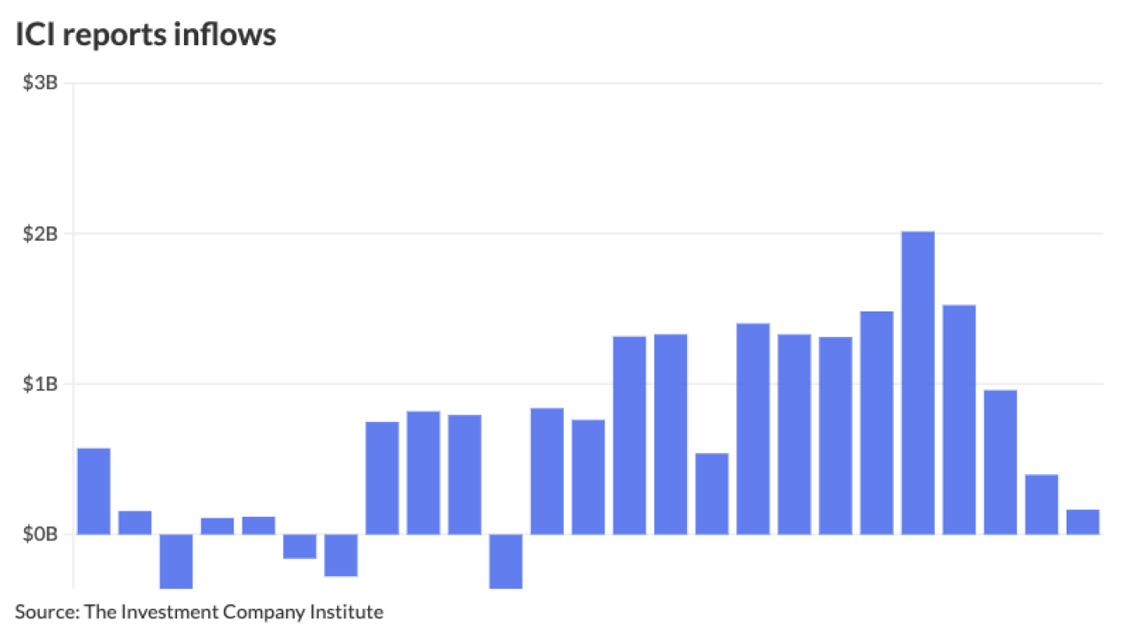 Tax-exempt money market funds reached a 2024 high of assets under management at $136.84 billion for the week ending Wednesday, according to the Investment Company Institute.